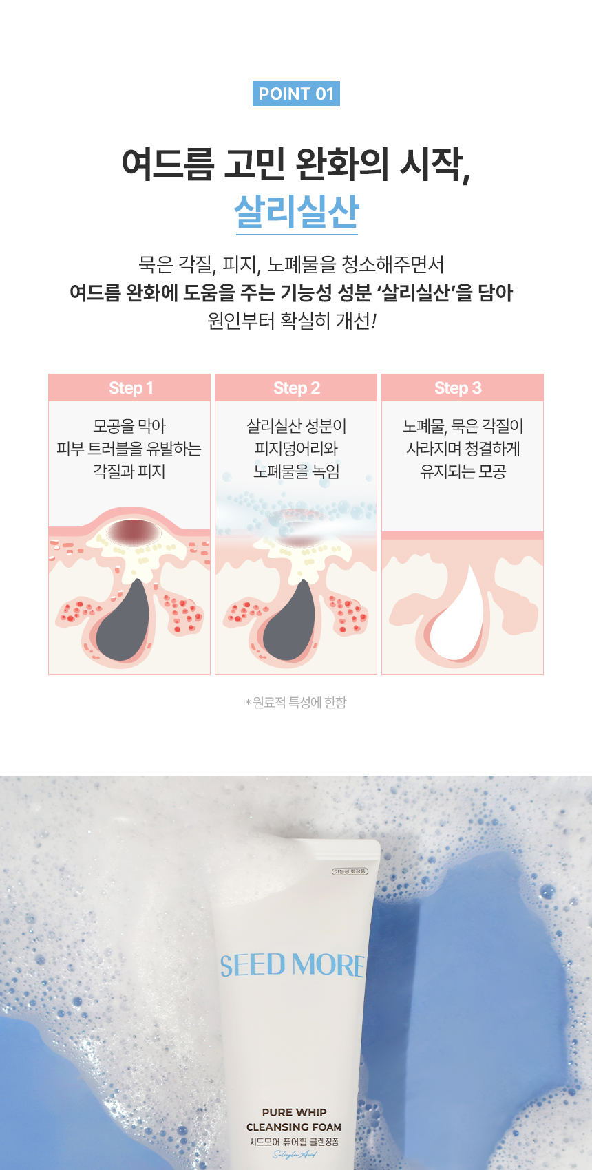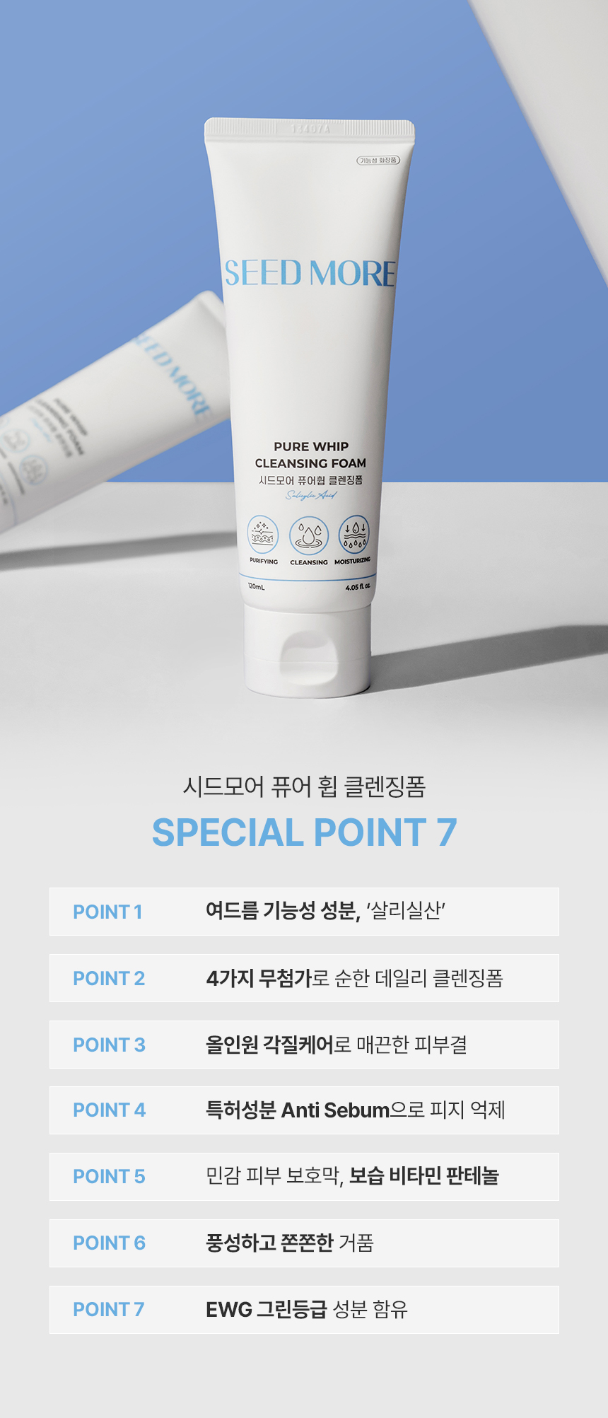 시드모어 퓨어 휩 클렌징폼 상세페이지 디자인