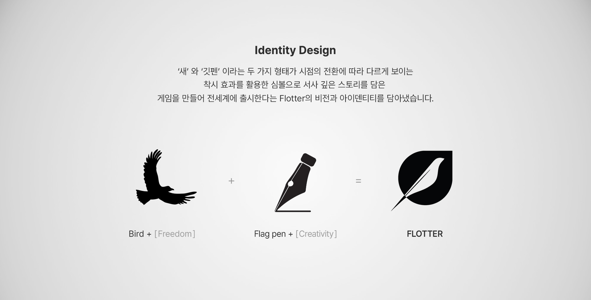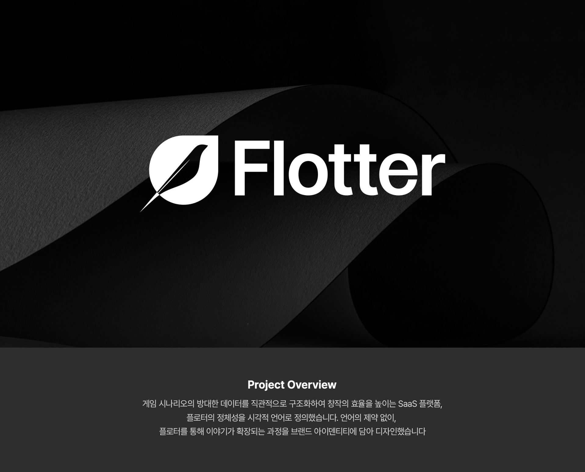 We defined the identity of Flotter, a SaaS platform that intuitively structures large-scale game scenario data to improve creative efficiency, through a cohesive visual language. Moving beyond the limits of language, we visualized the process by which stories are generated and expanded through Flotter as lines radiating from a single point—expressing the brand’s vision and its scalable identity system.